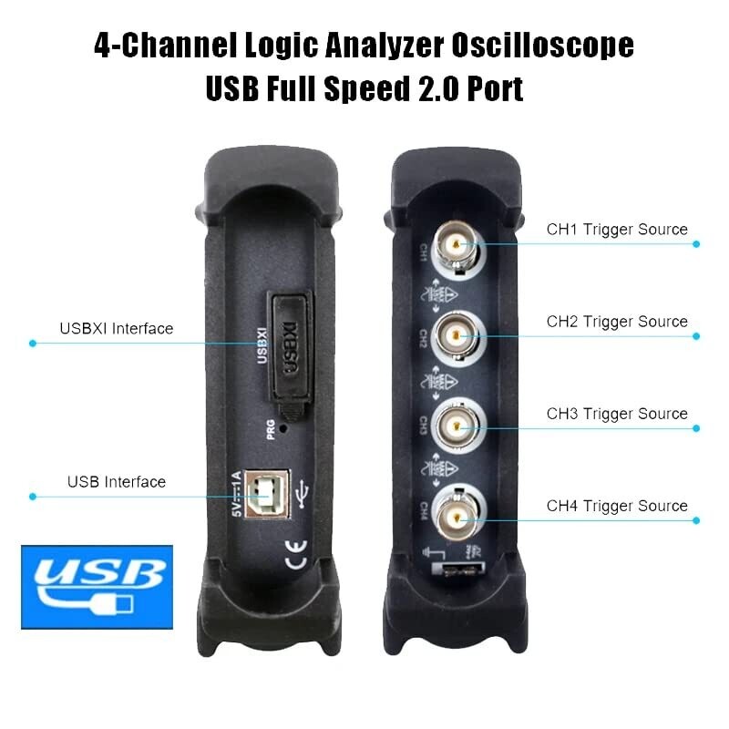Yuqiaotime Hantek 6074Bc/BD/BE 4-Channel 70Mhz USB Oscilloscope – Compact