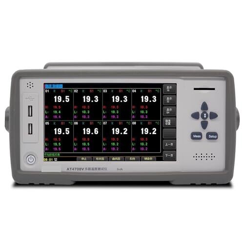 The AT4708V offers eight independent measurement channels for simultaneous temperature monitoring. It supports PT100 RTDs and common thermocouples across -200°C to 1300°C, delivering real-time data on a clear display for fast decisions and improved process control in labs and industrial settings.