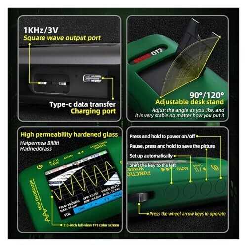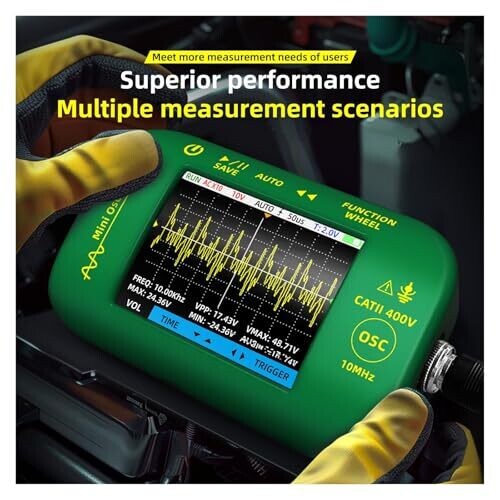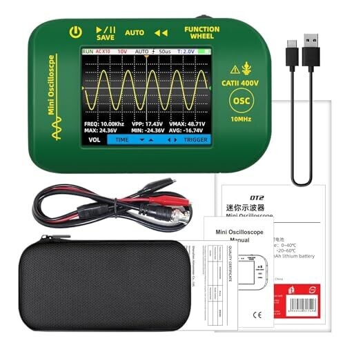 • Compact, portable handheld oscilloscope designed for electronics repair and experimentation.