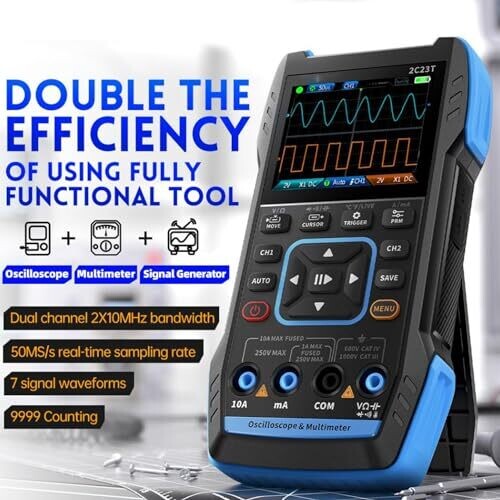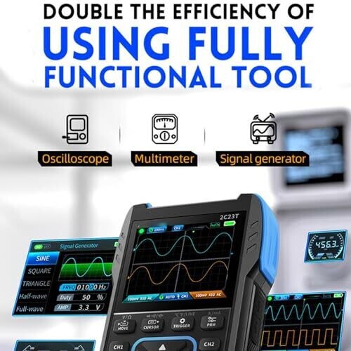 • Designed for versatility, this device blends oscilloscope, multimeter, and signal generator capabilities into a single, easy-to-use tool.