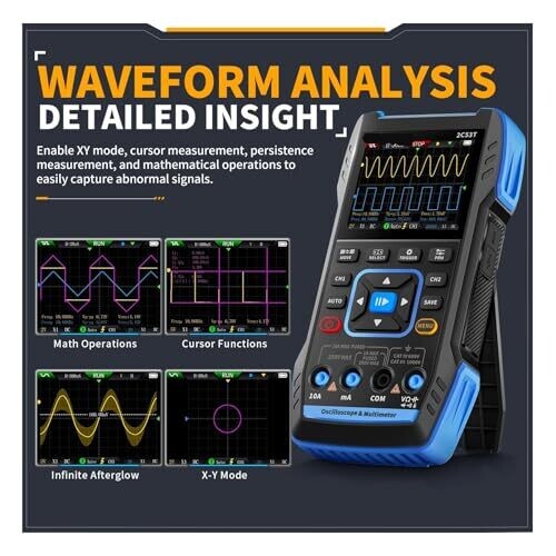 - Versatile 3-in-1 device that combines oscilloscope, multimeter, and signal generator in a compact handheld form for automotive diagnostics and electronics testing.