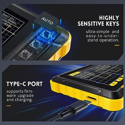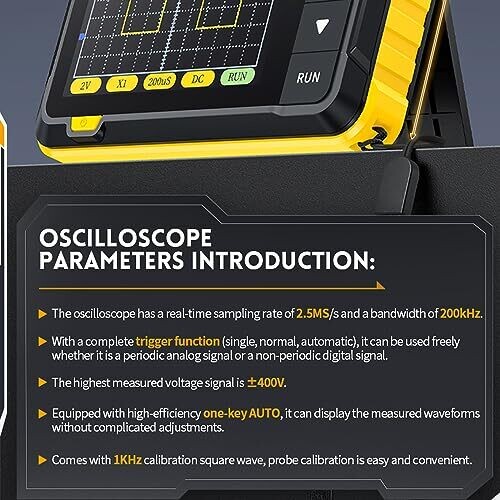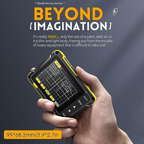 Experience portable precision with the Handheld Oscilloscope Kit for on-the-go diagnostics. Compact, 2.8-inch display, 1000mAh battery with USB-C charging, and real-time measurements with easy triggering. Includes a high-voltage probe system for field testing.