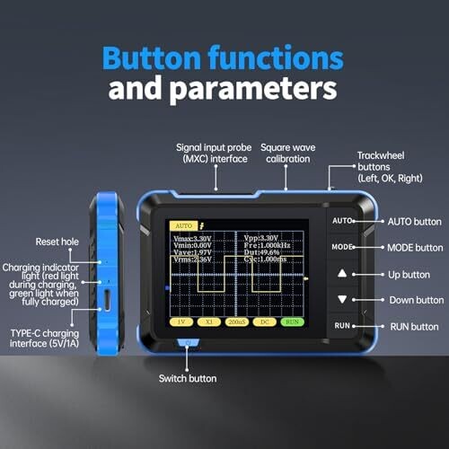 - Luocute DSO152 Handheld Oscilloscope offers portable, on-the-go waveform analysis with a compact form factor designed for automotive repair, teaching, and DIY projects.