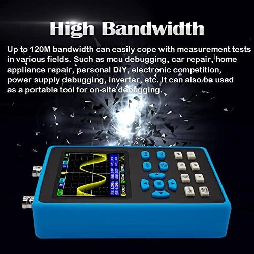 Portable handheld oscilloscope with dual channels and a 2.8-inch display for easy side-by-side signal comparison. Includes FFT spectrum analysis and multiple waveform captures, enabling quick diagnostics for field technicians and hobbyists. Lightweight, fast acquisition, ideal for DIY projects and repairs.