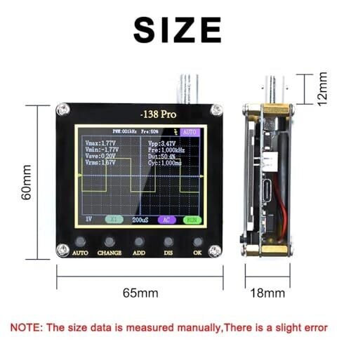 TechMate 138 Pro Handheld Oscilloscope delivers professional performance in a compact, ultra-portable design. Features one-key AUTO mode, analog and digital signal measurements, a bright 2.4-inch LCD, rugged pocket-friendly build, and a built-in power source for extended field or lab work.