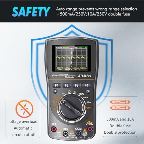 Et828Pro 10Mhz Oscilloscope & 6000-Count True RMS Multimeter - Handheld, 50 Msps