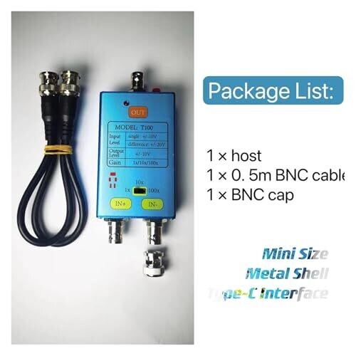 • 1 x 10 M bandwidth signal amplifier, 1 x 0.5 m BNC straight cable, 1 x BNC short-circuit cap