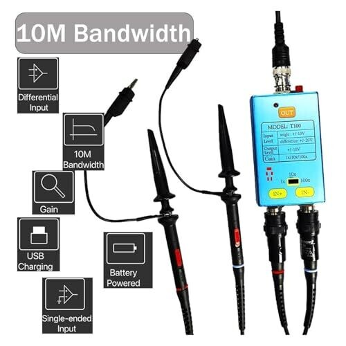 Pulsetech 10M Differential Probe for Battery-Powered Oscilloscope Accessory