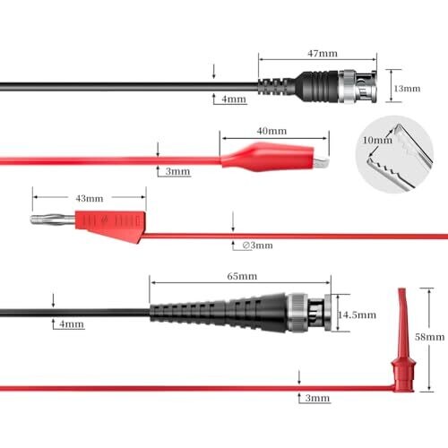 The Wunlong CKT014 Universal Oscilloscope Probes set includes 100 MHz 1X and 10X probes, BNC test leads, and wire-piercing probes. Ideal for safe signal testing, quick connection, and versatile measurements across electronics projects and lab work.