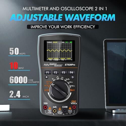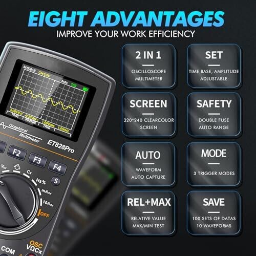 Et828Pro 10Mhz Oscilloscope & 6000-Count True RMS Multimeter - Handheld, 50 Msps