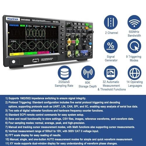 • Hantek 2Ch Dso2D50 Digital Storage Oscilloscope with Built-In Signal Generator