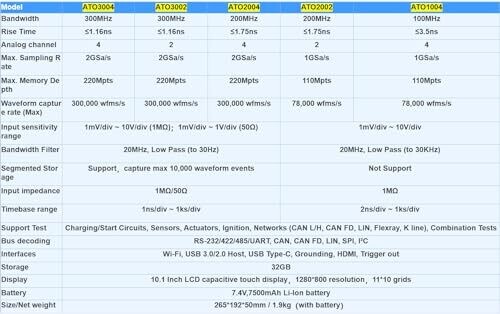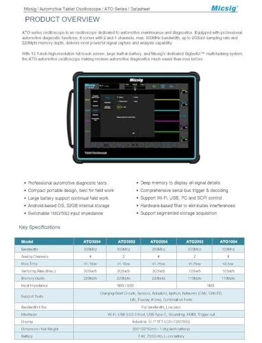 Micsig Automotive Oscilloscope ATO Series ATO2002/1004/2004/3002/3004 – 2/4 Channels, 100–300Mhz