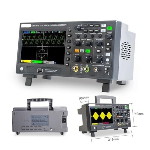 - Portable dual-channel oscilloscope designed for on-the-go diagnostics and field work.