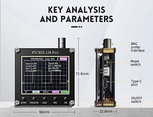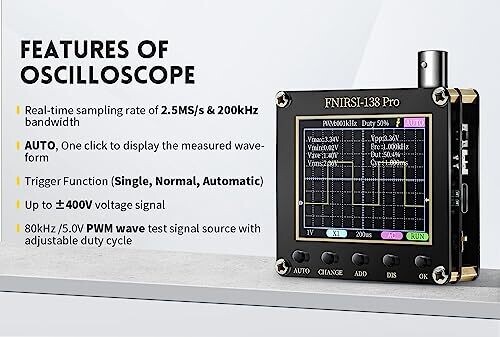 - Fnirsi-138 PRO Handheld Mini Digital Oscilloscope is designed for on-the-go testing and quick signal insights with a compact, easy-to-use form factor.