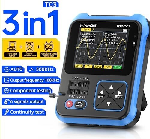Fnirsi Dso-Tc3: 3-In-1 Oscilloscope, Transistor Tester & Signal Generator