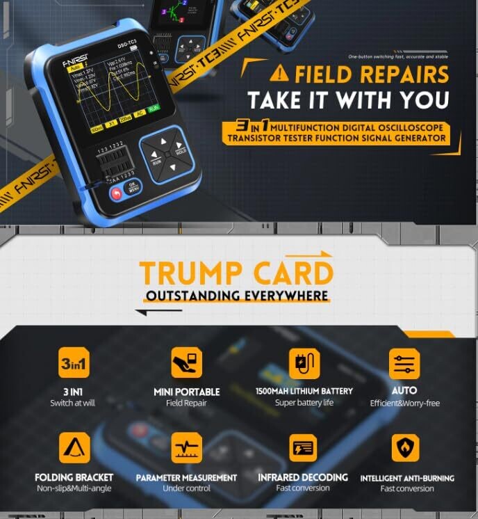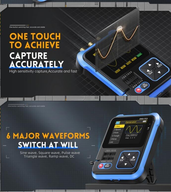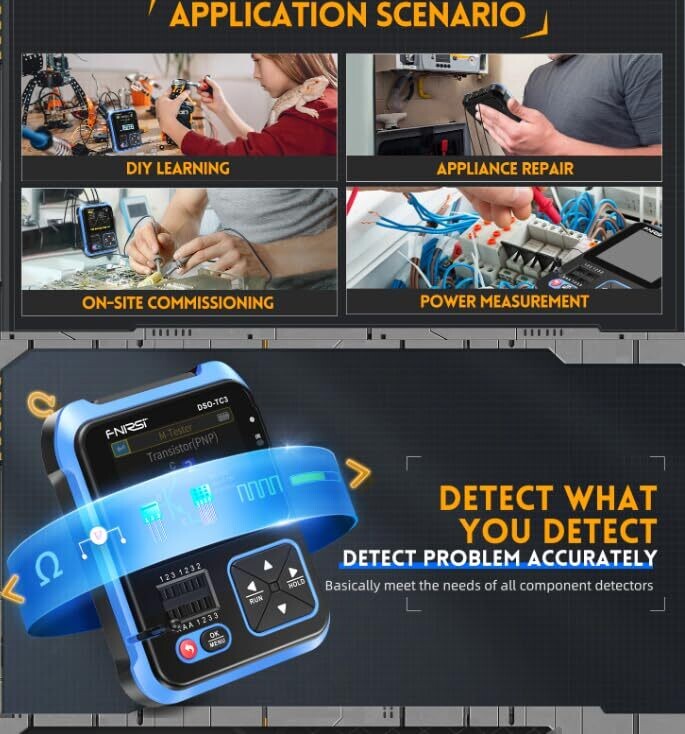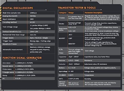 - Experience three essential tools in one sleek package: an oscilloscope for waveforms, a transistor tester for device analysis, and a signal generator for hands‑on circuit testing. It’s ready to go wherever ideas strike.
