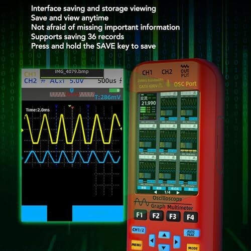 • Seamlessly switch between oscilloscope and multimeter modes, improving efficiency and flexibility for a wide range of electronic projects.
