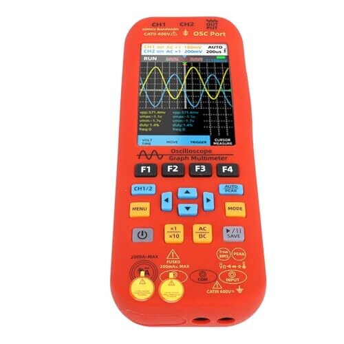 A compact 3-in-1 handheld instrument combining oscilloscope, multimeter and signal generator for automotive and electronics work. Built with a durable silicone cover, large color display, intelligent overload protection, and dual isolated channels for accurate, interference-free measurements on the go.