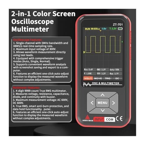 ZT-701 Handheld Oscilloscope & Multimeter: High-Precision, Anti-Burn, Two-In-One
