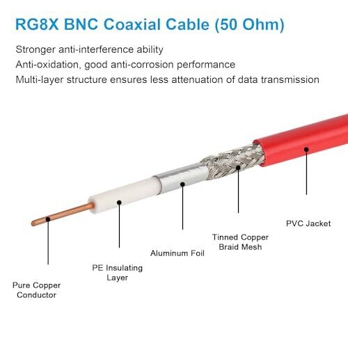 - 50 ohm ultra-low loss RG8X construction delivers strong signal integrity for antennas, RF radios, modems, oscilloscopes, spectrum analyzers, and signal generators.