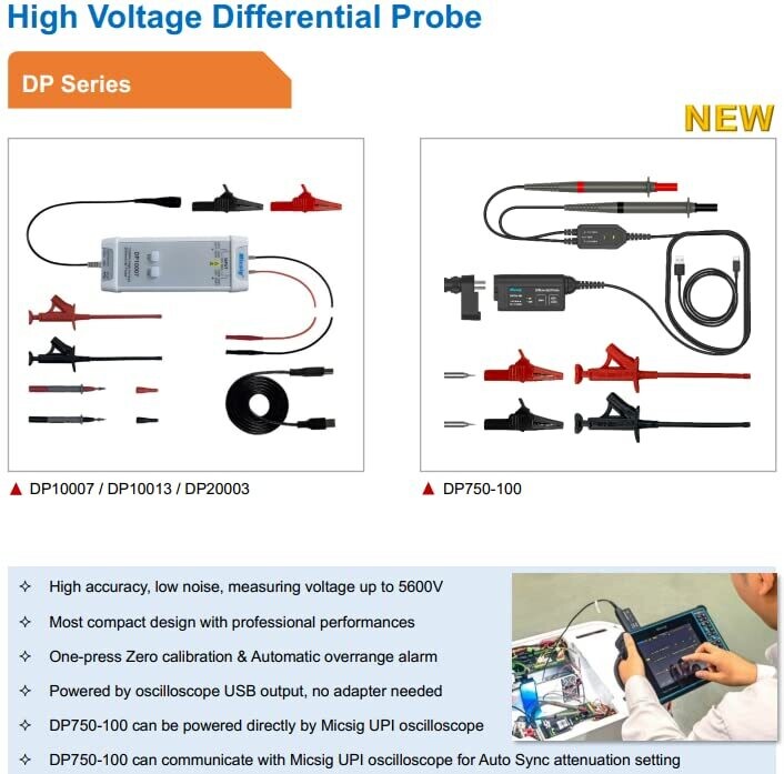 • Micsig Votagle Probe DP20003/DP10007/DP10013 for Any Oscilloscope — USB-Powered