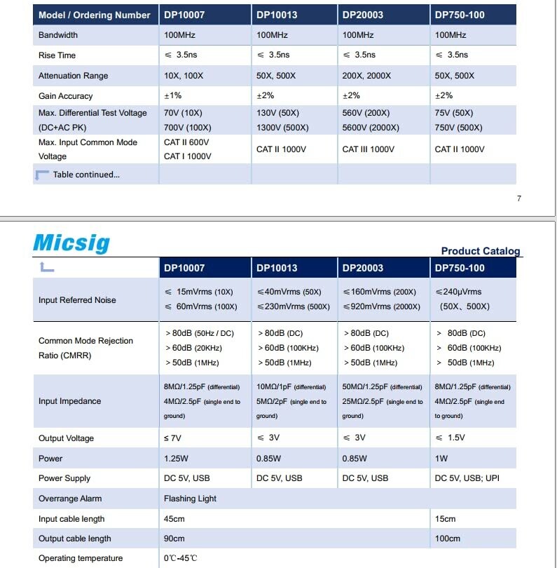 Micsig DP20003/DP10007/DP10013 Oscilloscope Probes – USB Powered, Self-Calibration