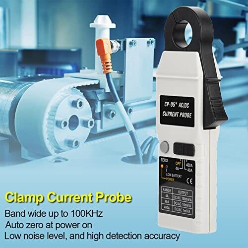 Precise AC/DC current measurement with a clamp probe designed for oscilloscope use, offering a wide range, high bandwidth, and fast-changing signal capture. Built with a low-loss amorphous alloy coil, it ensures accuracy, auto zero on power-up, low battery indication, and compact, user-friendly operation.