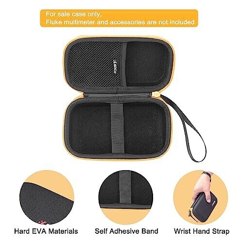 Protect and transport your Fluke pocket digital multimeter with premium eco-friendly materials. This case features a sturdy exterior, soft interior, moisture resistance, a mesh pocket for leads, and a convenient wrist strap for easy carrying.
