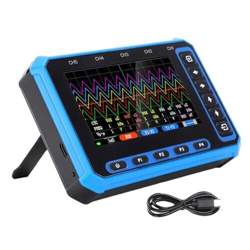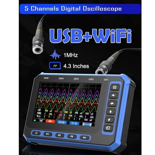 A compact handheld oscilloscope for quick signal insight on the go. It connects via USB Type-C for real-time control, supports five independent channels, and features a bright 4.3-inch IPS display. Lightweight, long-lasting battery, ideal for field work and learning.