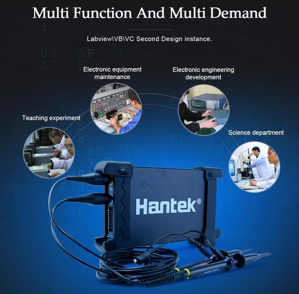 Hantek specialises in affordable oscilloscopes, particularly USB and PC-based models that connect directly to computers for waveform analysis. Their products are widely used by hobbyists, students, and budget-conscious technicians.