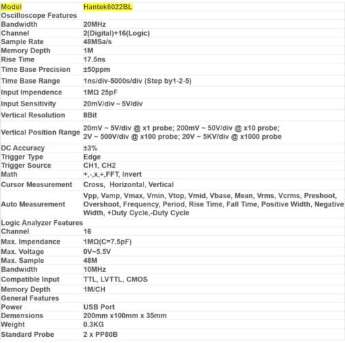 Be the first to review “Hantek 6022Bl USB PC Oscilloscope — 2 Channels, 20 Mhz, 48 Msa/S” Cancel reply